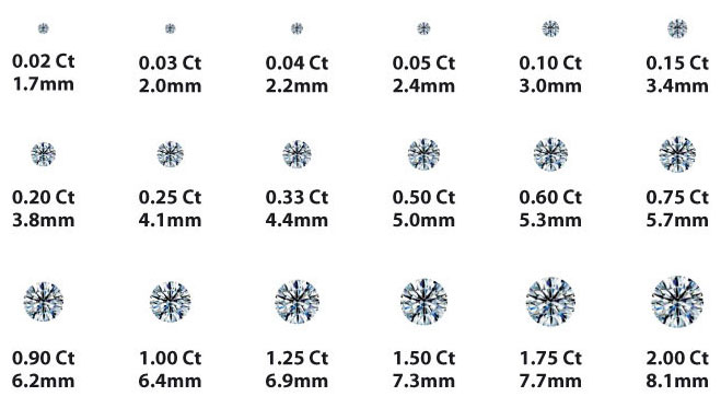 Diamond carat weight is the measurement of how much a diamond weighs. A metric "carat" is defined as 200 milligrams. When buying diamonds, size does matter. Even to the untrained eye, differences in size are clearly visible.