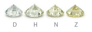Diamonds have various tints and are graded on how colourless they are. Starting from grade D, being colourless or exceptional white which are rarer and so more valuable, up to grade Z.